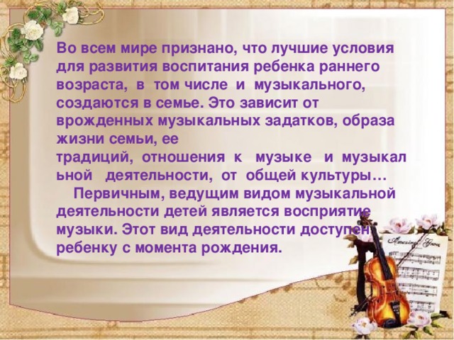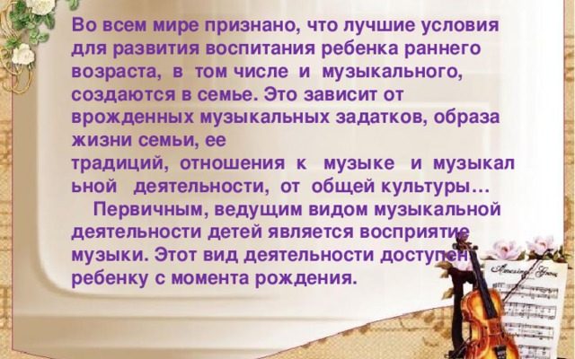 Музыкальное воспитание с первых месяцев жизни